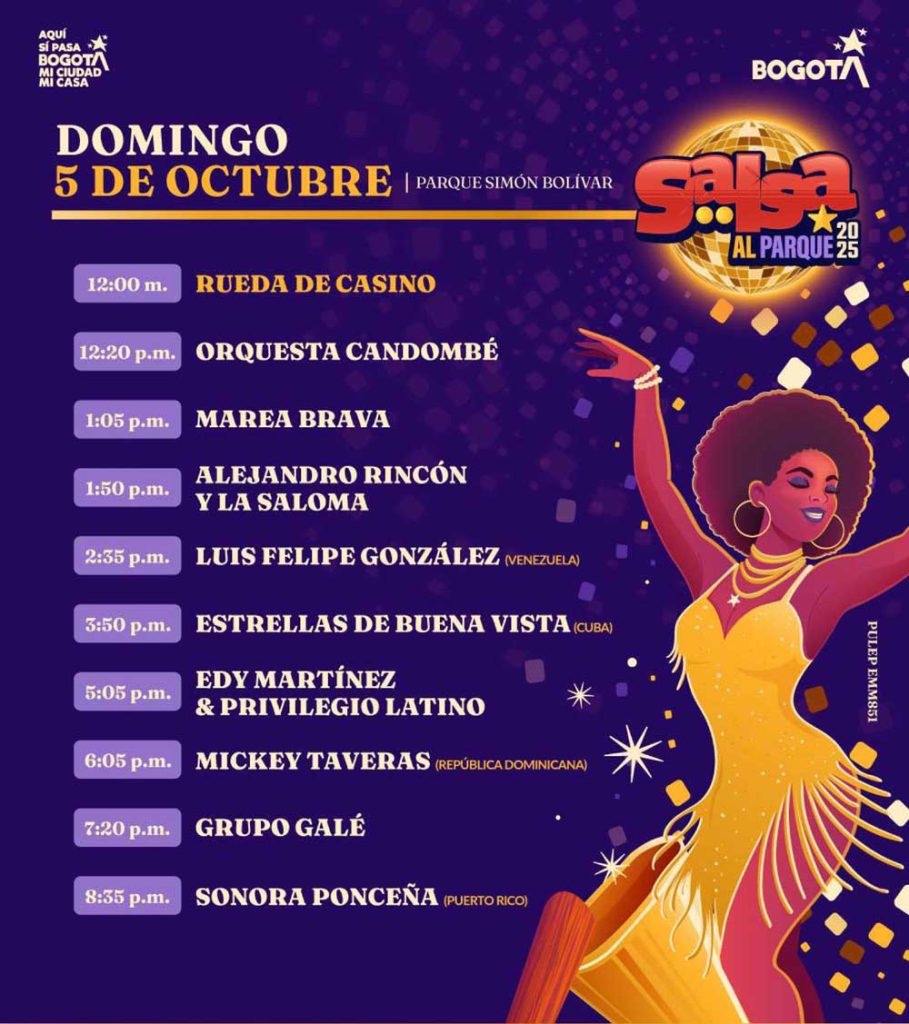 El sábado 4 y domingo 5 de octubre, el Parque Simón Bolívar será el punto de encuentro para miles de amantes de la salsa, con entrada libre, desde el mediodía hasta entrada la noche. Esta edición especial no solo celebra un aniversario, sino también reafirma a Bogotá como una de las capitales salseras de América Latina.